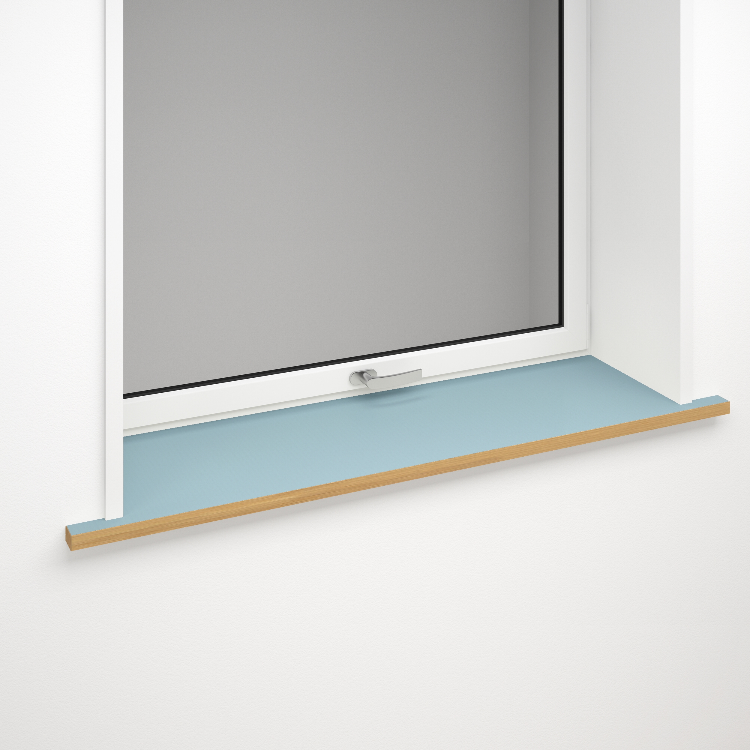 Die Fensterbank besteht aus einer MDF-Platte, die mit 2 mm dickem Linoleum bedeckt ist. Sie hat eine elegante matte Oberfläche und fühlt sich sehr angenehm an.