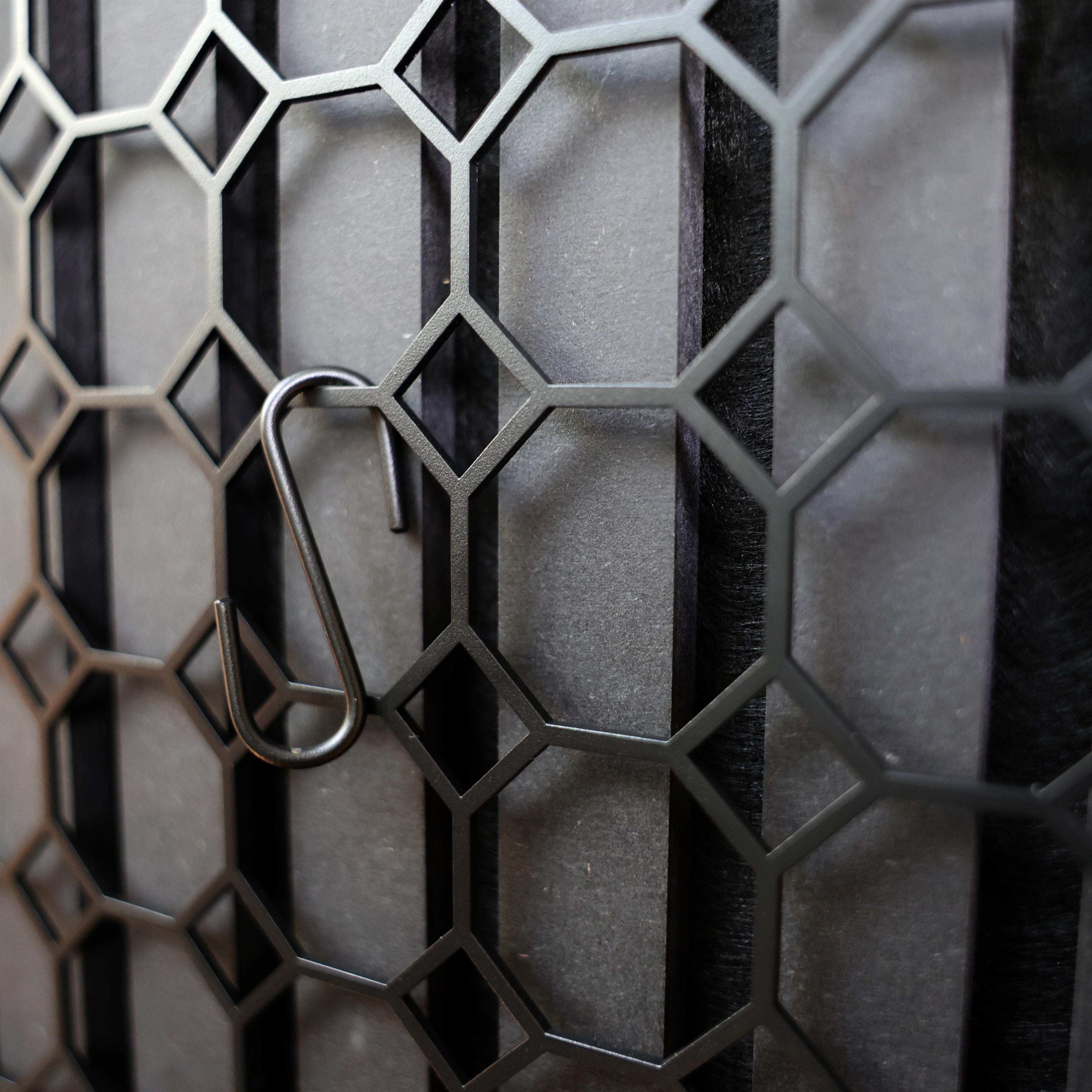 Schwarzer Organizer aus Metall mit 4 S-Haken