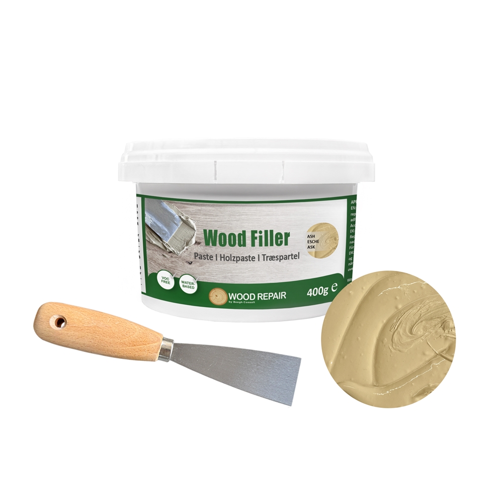 Wood Filler ist gebrauchsfertig und lässt sich einfach direkt aus dem Eimer auftragen. Für die Anwendung benötigen Sie ein Spachtelwerkzeug – und das ist selbstverständlich im Lieferumfang enthalten! Denken Sie auch daran, Schleifpapier und Oberflächenbehandlung bereitzuhalten, um das beste Ergebnis zu erzielen.